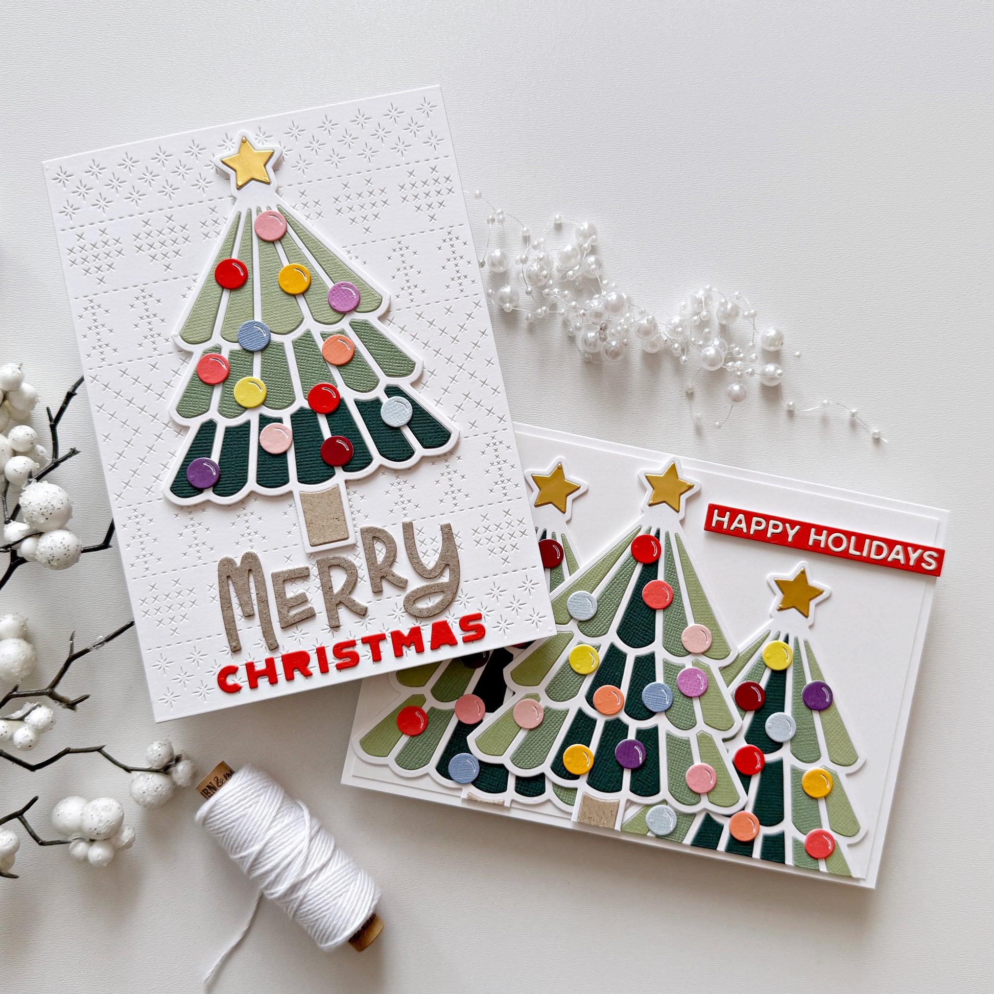 Ein Set mit 2 Stanzen (manche davon bestehen aus mehrere kleinen Stanzen für ein einfacheres Schneiderlebnis). Lasst euch von den Kartenbeispielen inspirieren. Wir haben auch ein Prozessvideo mit diesem Stanzenset auf unserem YouTube-Kanal!