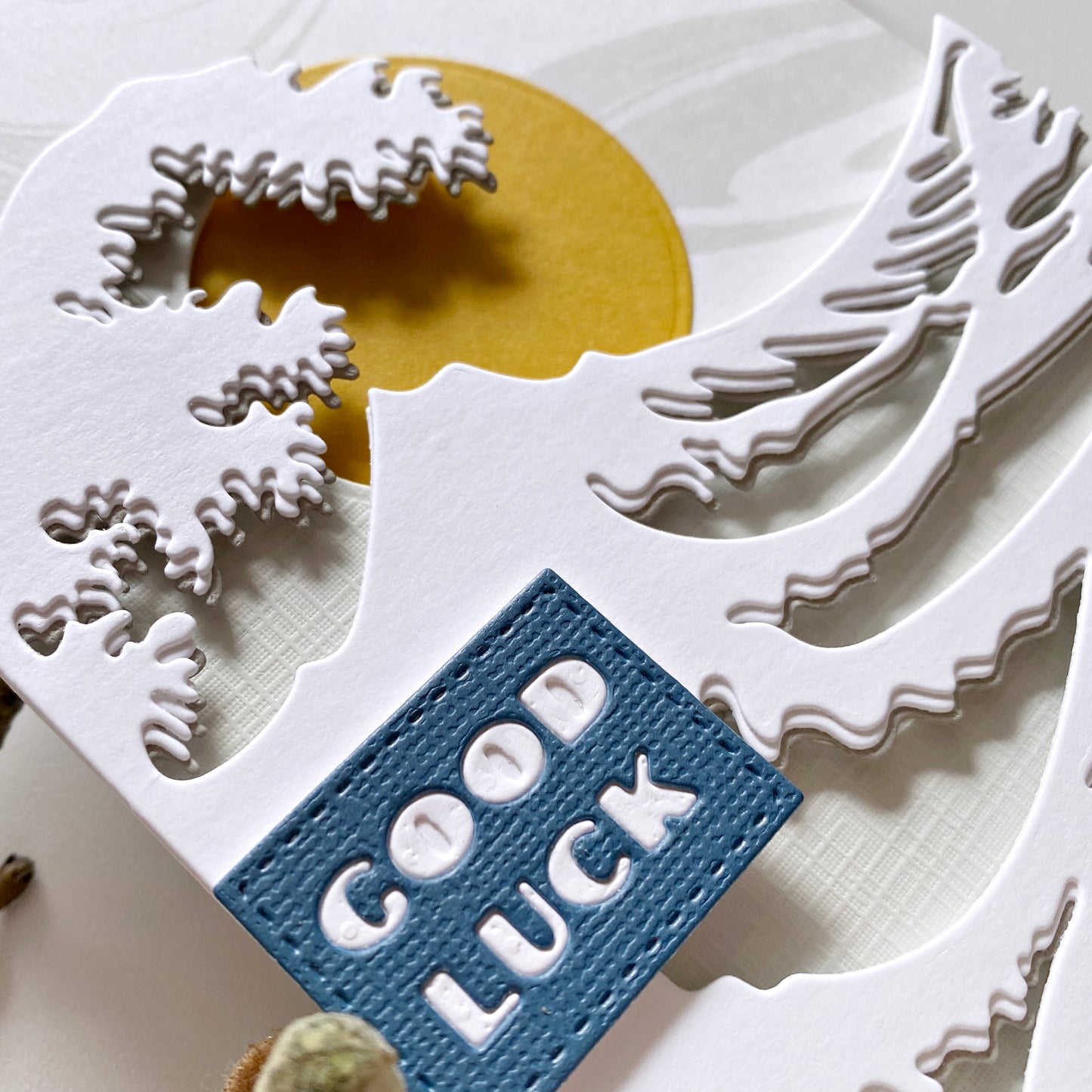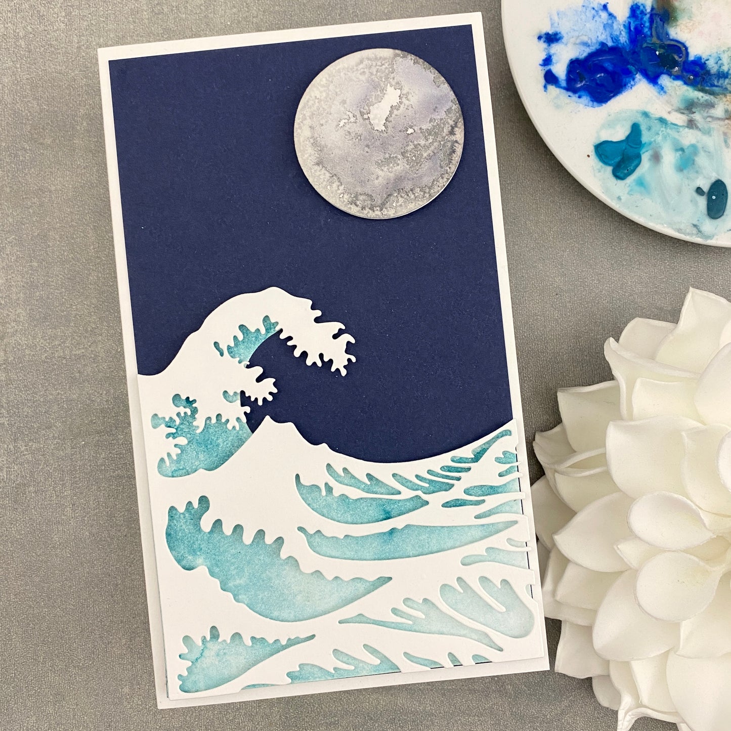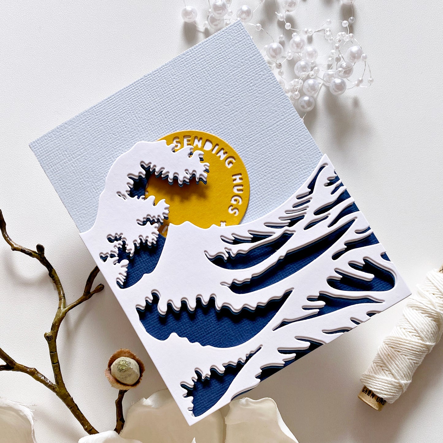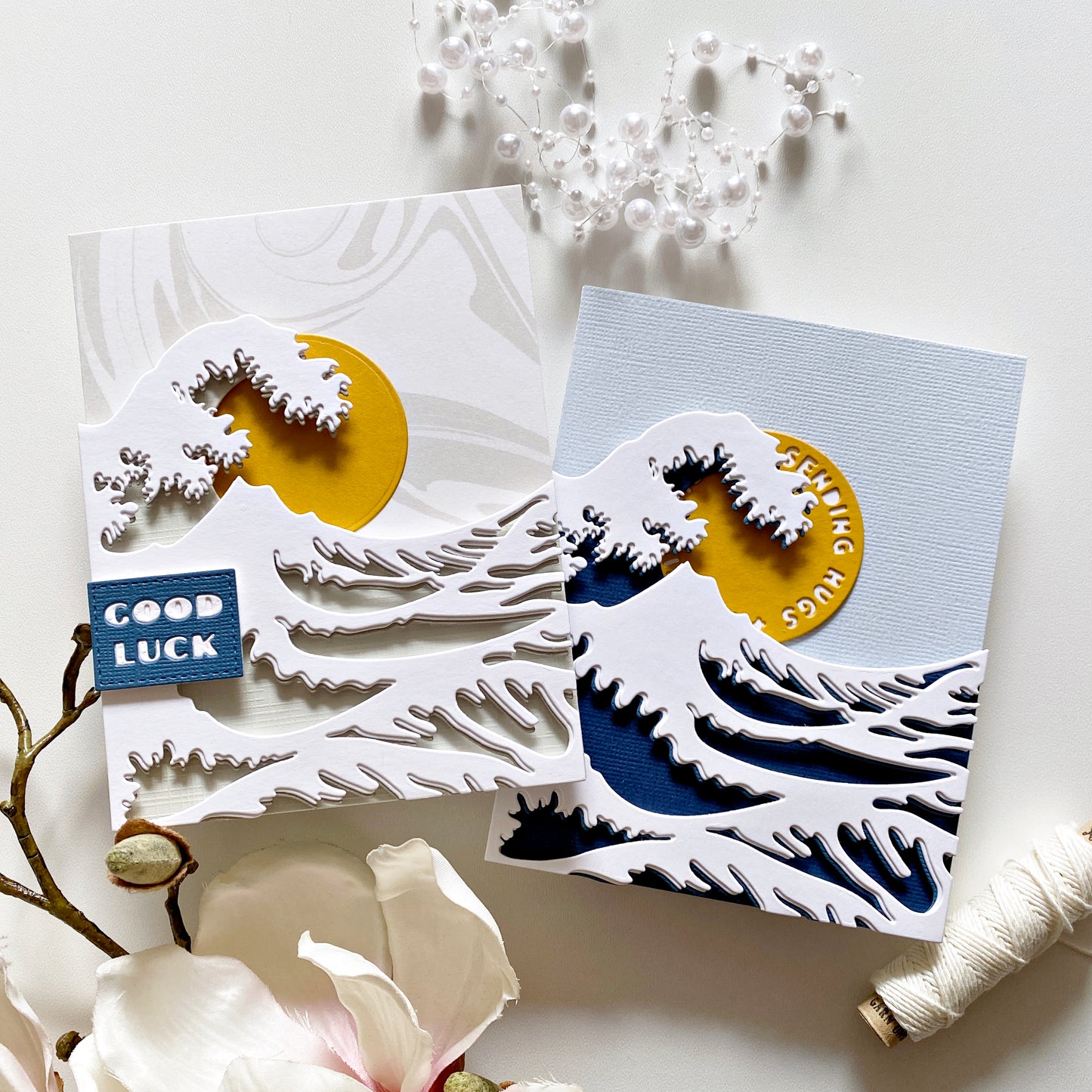 Ein Set mit 3 Stanzen zum Erstellen einer mehrschichtigen Welle, inspiriert von Hokusai's fantastischem Holzblockdruck „Die große Welle vor Kanagawa“! Lasst euch von den Kartenbeispielen inspirieren. Wir haben auch ein Prozessvideo mit diesem Stanzenset auf unserem YouTube-Kanal!
