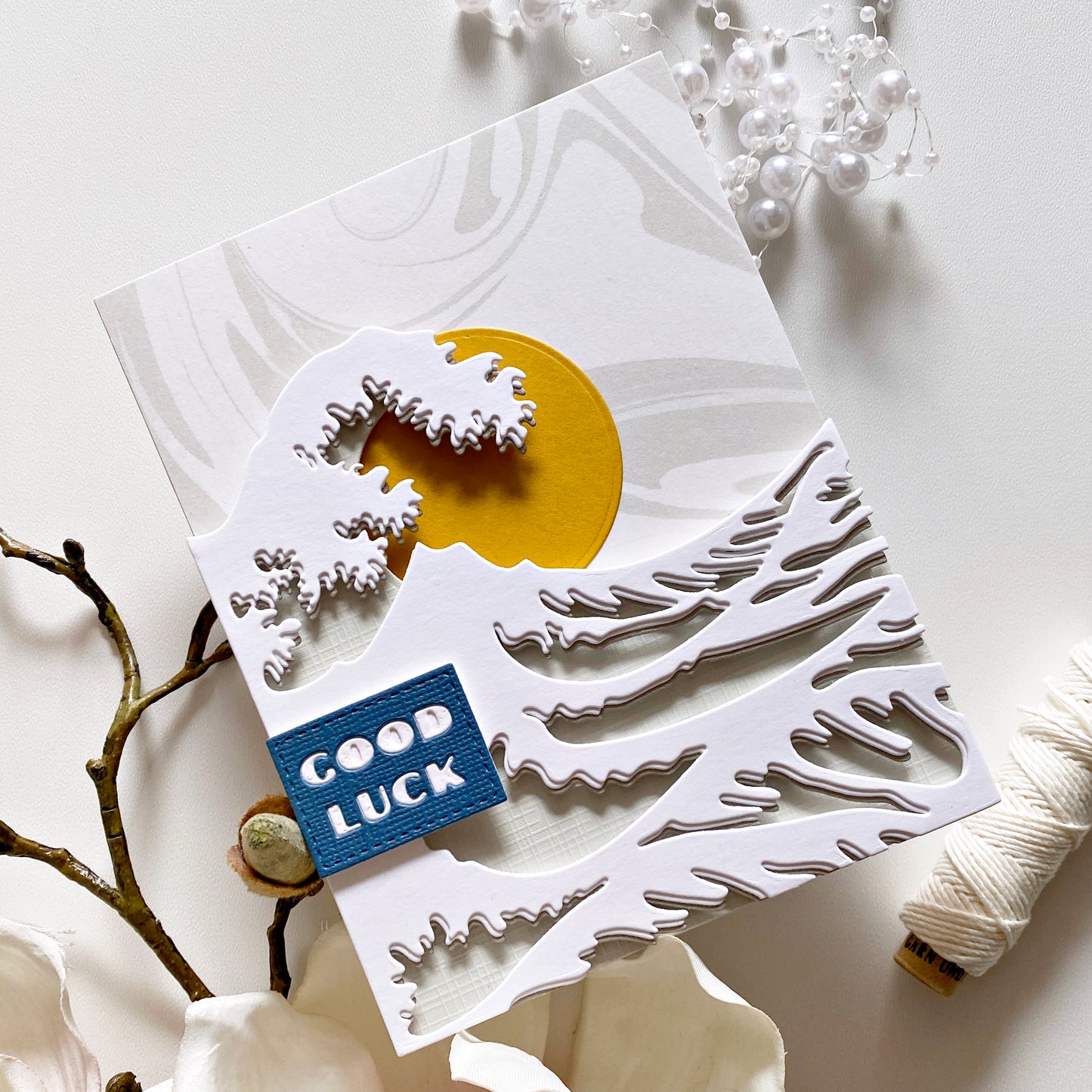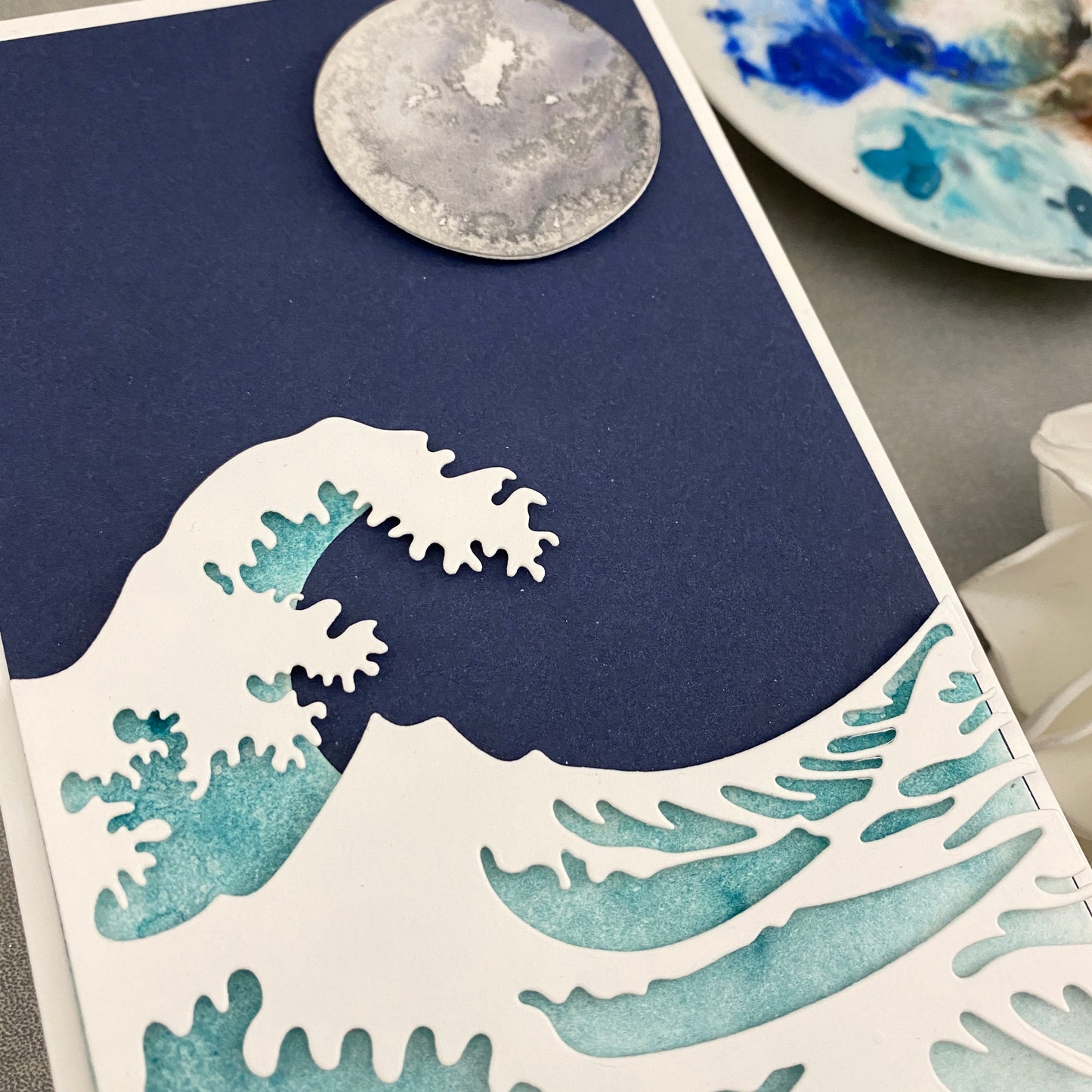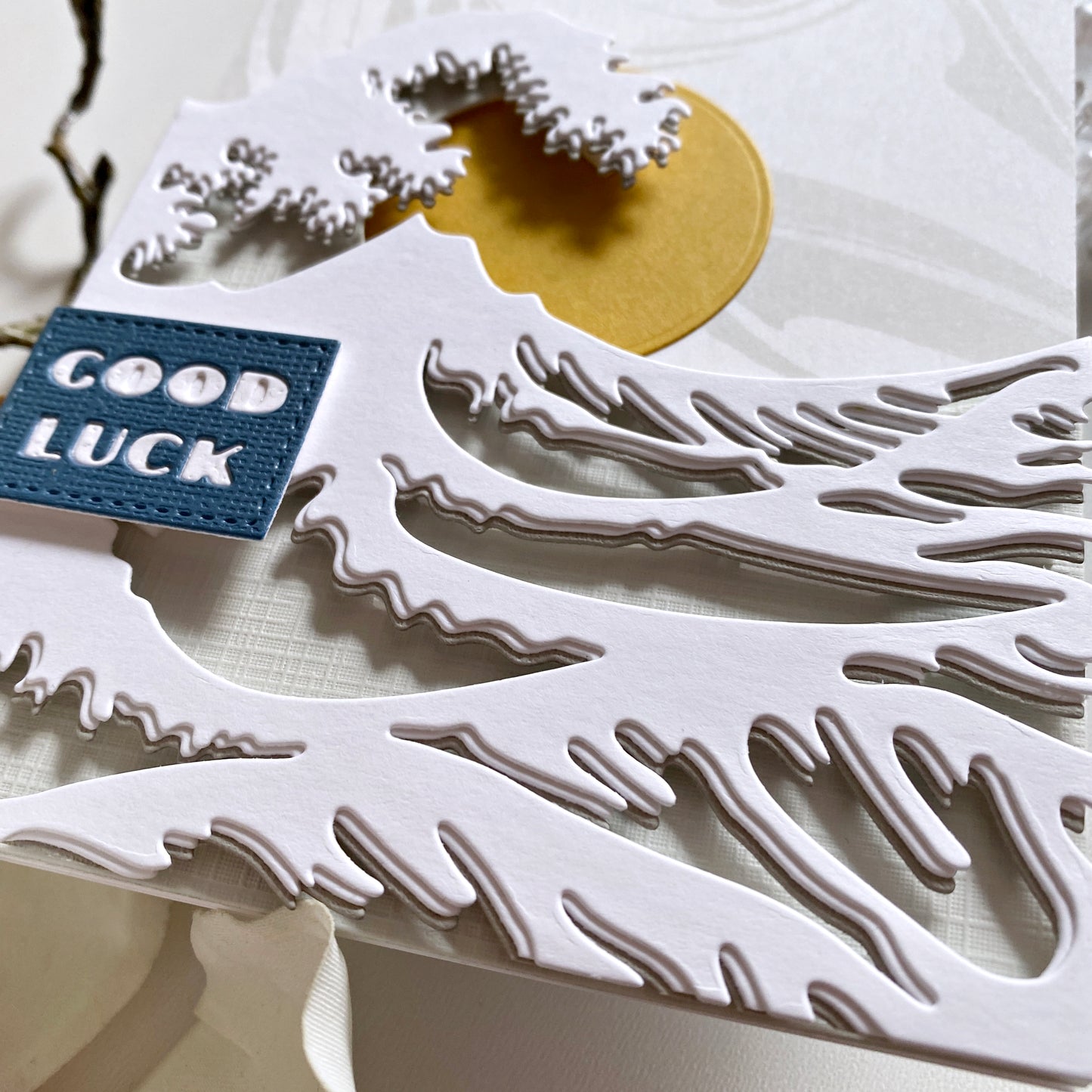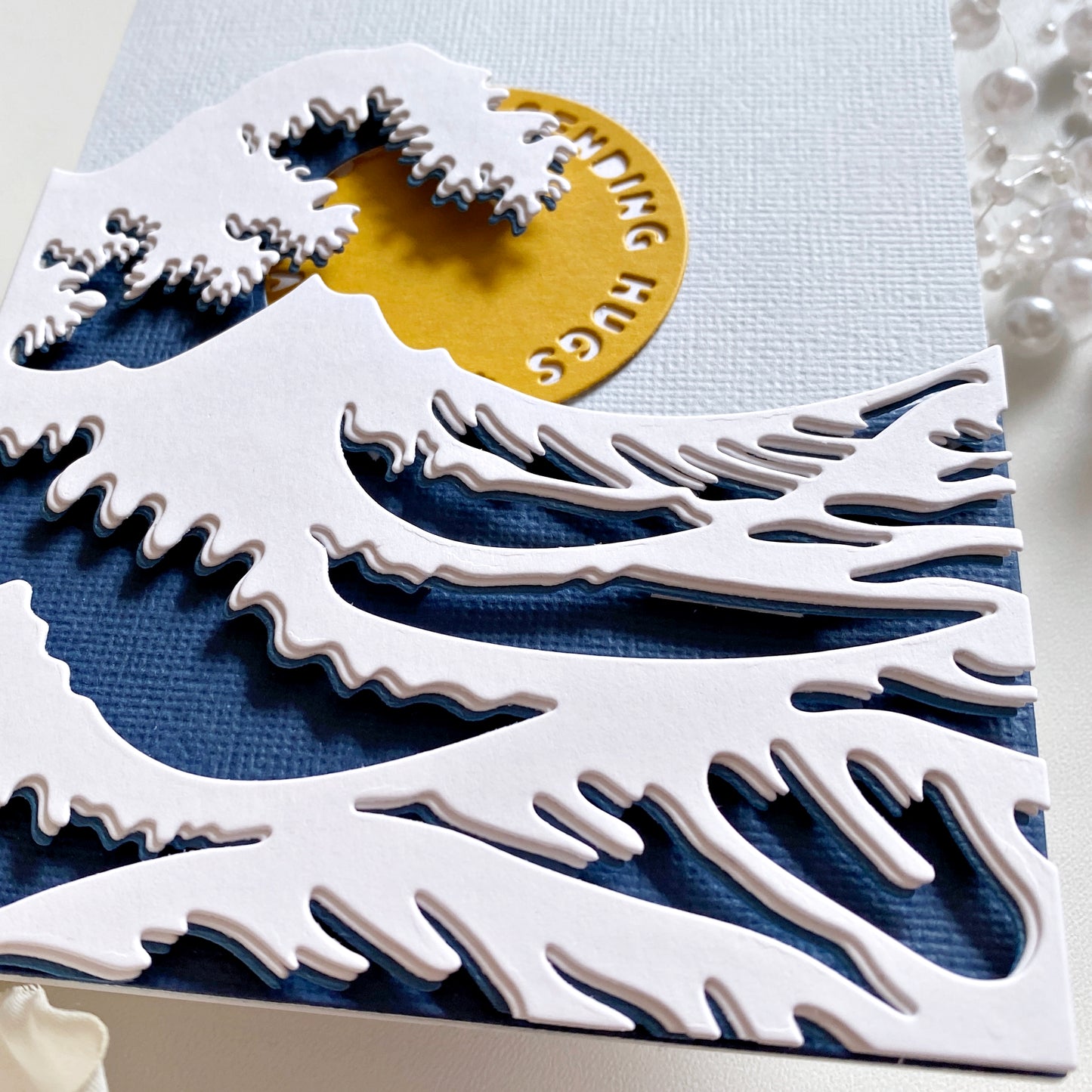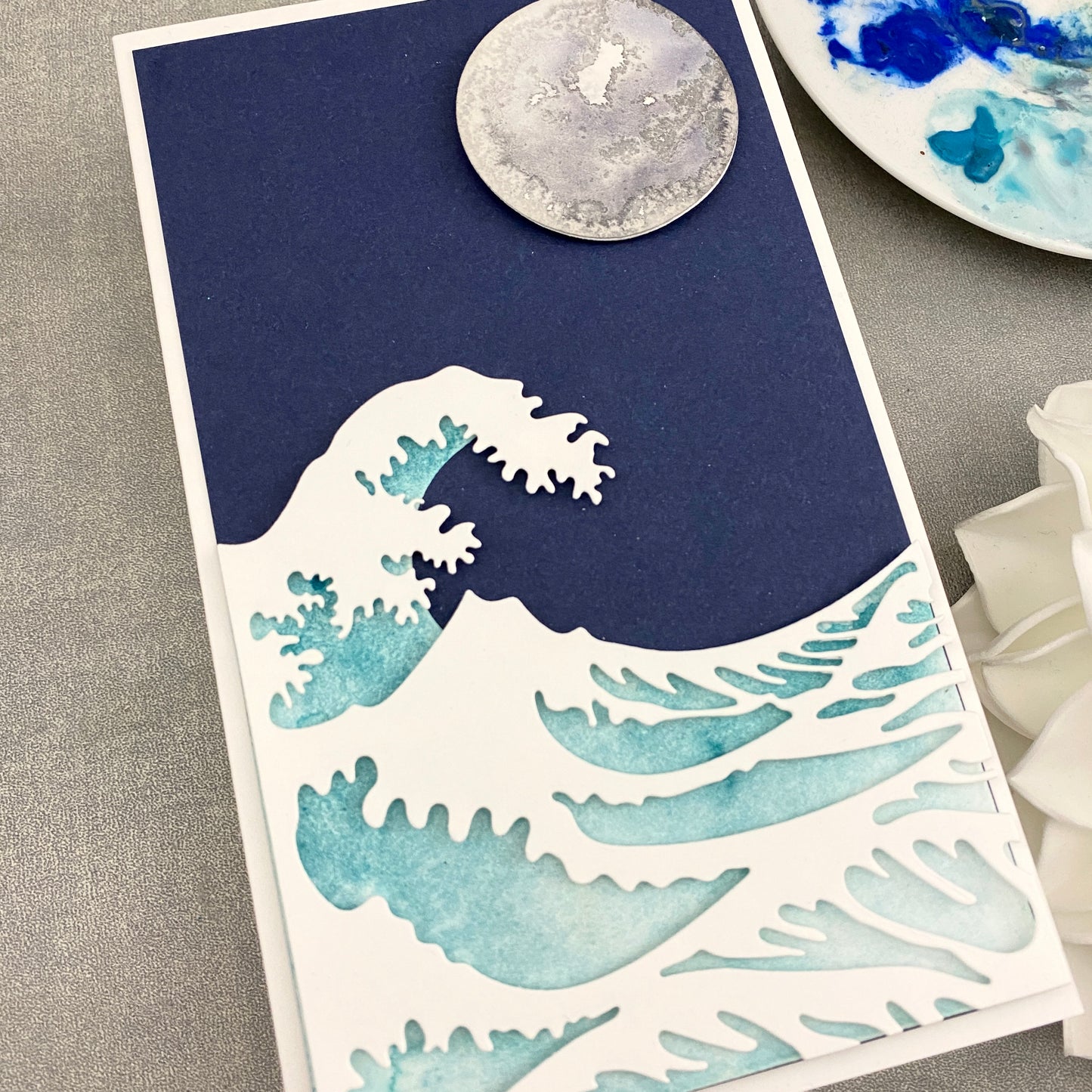 Ein Set mit 3 Stanzen zum Erstellen einer mehrschichtigen Welle, inspiriert von Hokusai's fantastischem Holzblockdruck „Die große Welle vor Kanagawa“! Lasst euch von den Kartenbeispielen inspirieren. Wir haben auch ein Prozessvideo mit diesem Stanzenset auf unserem YouTube-Kanal!